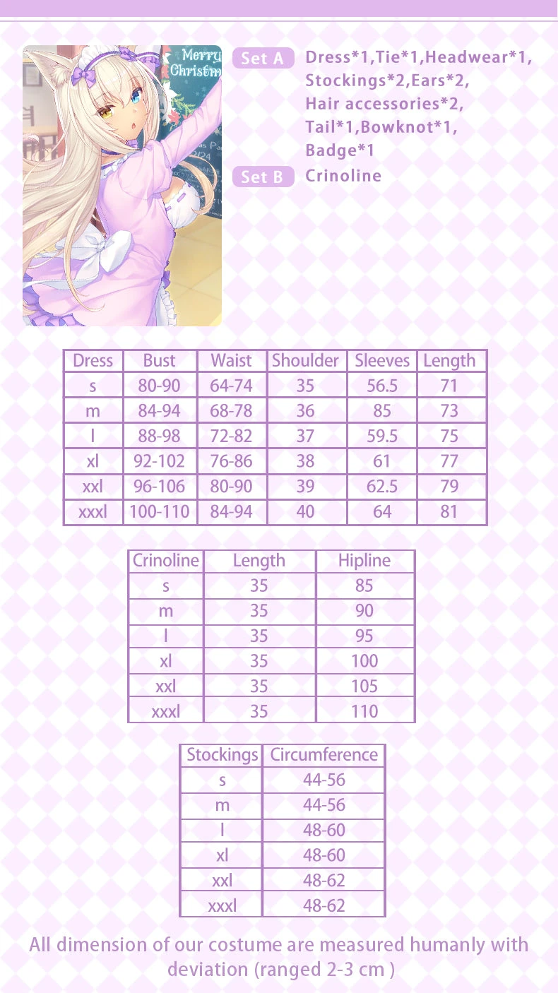 | Size | Set A S, Set A M, Set A L, Set A XL, Set A XXL, Set A XXXL, Set B |